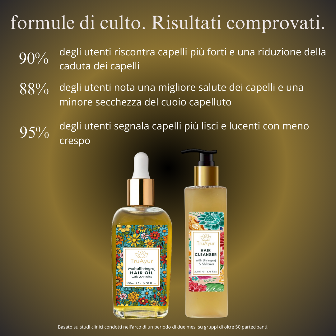Hair Repair & Revive Combo è il duo ayurvedico definitivo per la cura dei capelli, progettato per ringiovanire, ripristinare e rivitalizzare i capelli e il cuoio capelluto. Combinando i benefici nutrienti del nostro detergente per capelli e dell'olio per capelli MahaBhringraj, questo duo funziona in perfetta armonia per pulire, idratare e rinforzare i capelli dalla radice alla punta. Il detergente per capelli purifica e nutre delicatamente, mentre l'olio per capelli MahaBhringraj penetra in profondità nel cuoio capelluto per stimolare la crescita, ridurre la caduta dei capelli e ripristinare la lucentezza naturale, lasciando i capelli più forti, lucenti e resistenti ad ogni utilizzo.