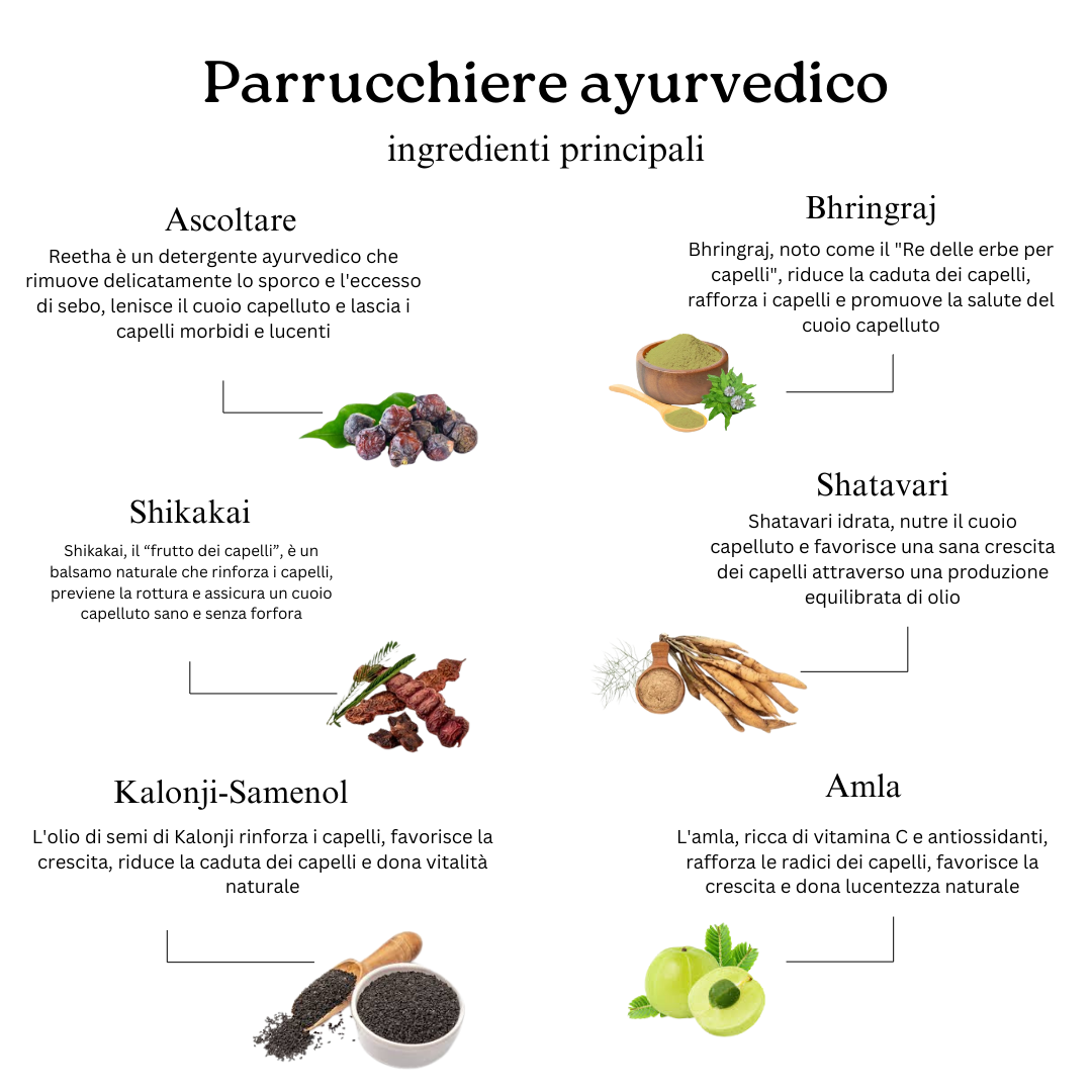 L’Ayurveda, l’antico sistema di guarigione olistica, considera la cura dei capelli come una parte essenziale del benessere generale. Radicato nei principi di equilibrio e armonia, l'Ayurveda si concentra sul nutrimento del corpo, della mente e dello spirito attraverso ingredienti e pratiche naturali. L'approccio ayurvedico alla cura dei capelli sottolinea l'importanza di nutrire il cuoio capelluto e le radici per favorire una crescita sana, ridurre la caduta dei capelli e ripristinare lucentezza e vitalità. Allineando l’energia del corpo con i ritmi naturali della natura, l’Ayurveda promuove la guarigione olistica e il ringiovanimento, non solo dei capelli ma dell’intero essere.