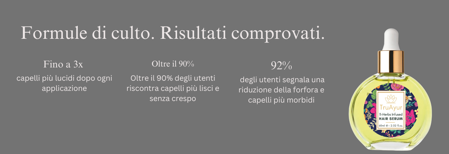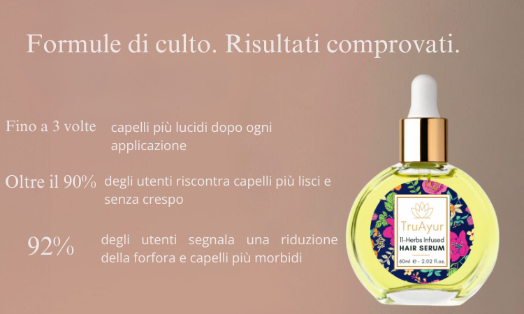 Concedetevi la sinergia di eccellenza botanica e innovazione moderna con il siero per capelli ayurvedico: un rituale rivitalizzante per capelli forti, sani e meravigliosamente lucenti.