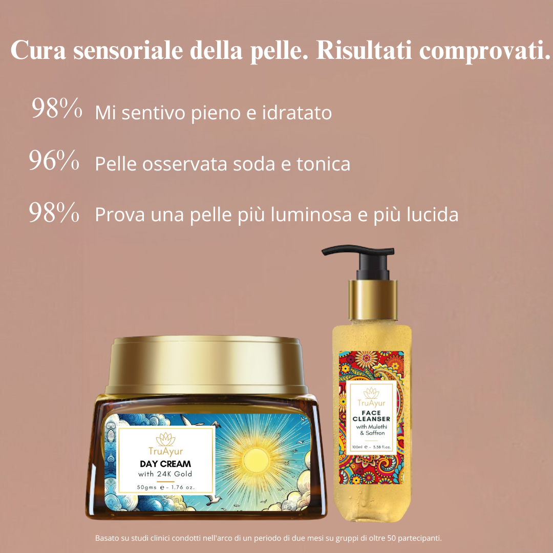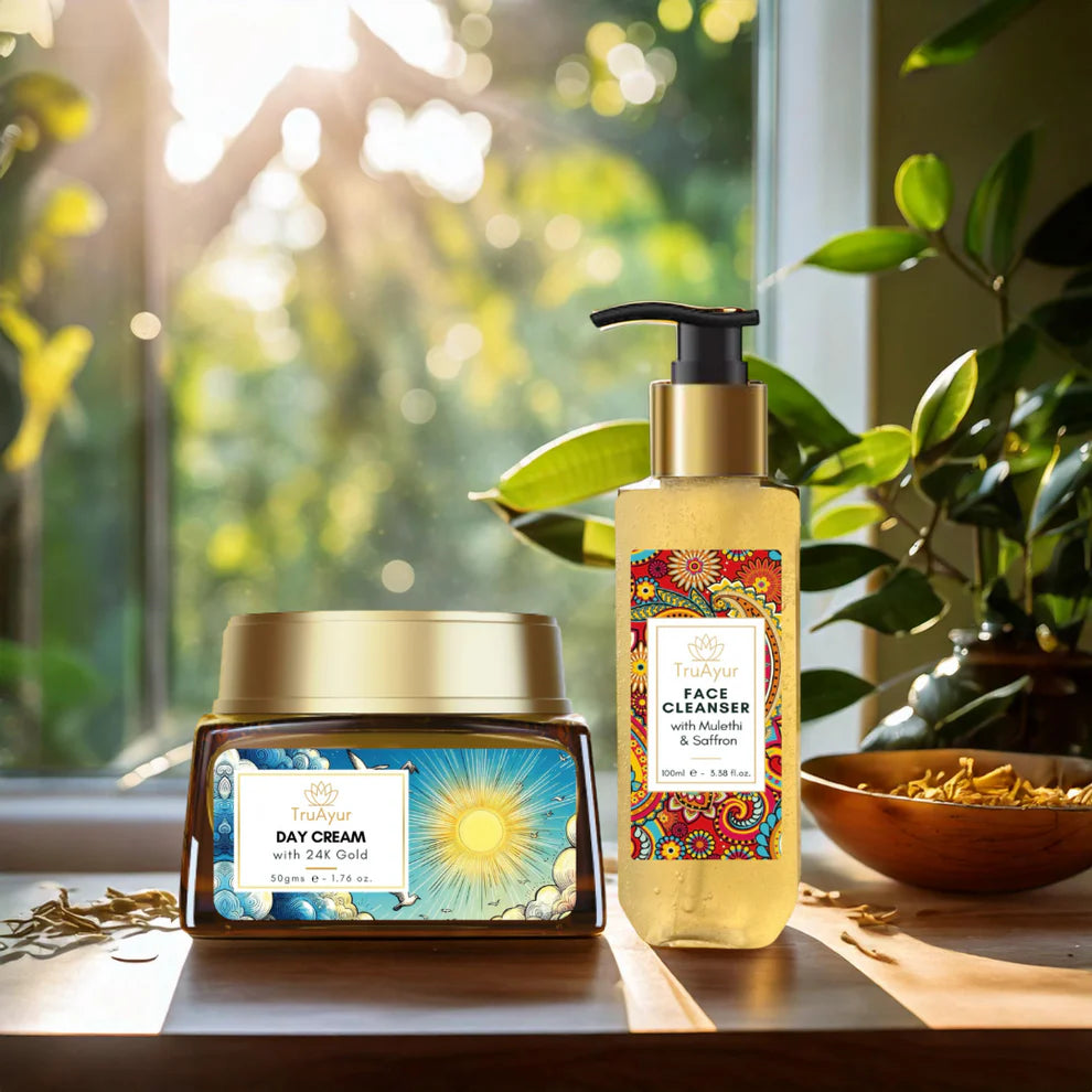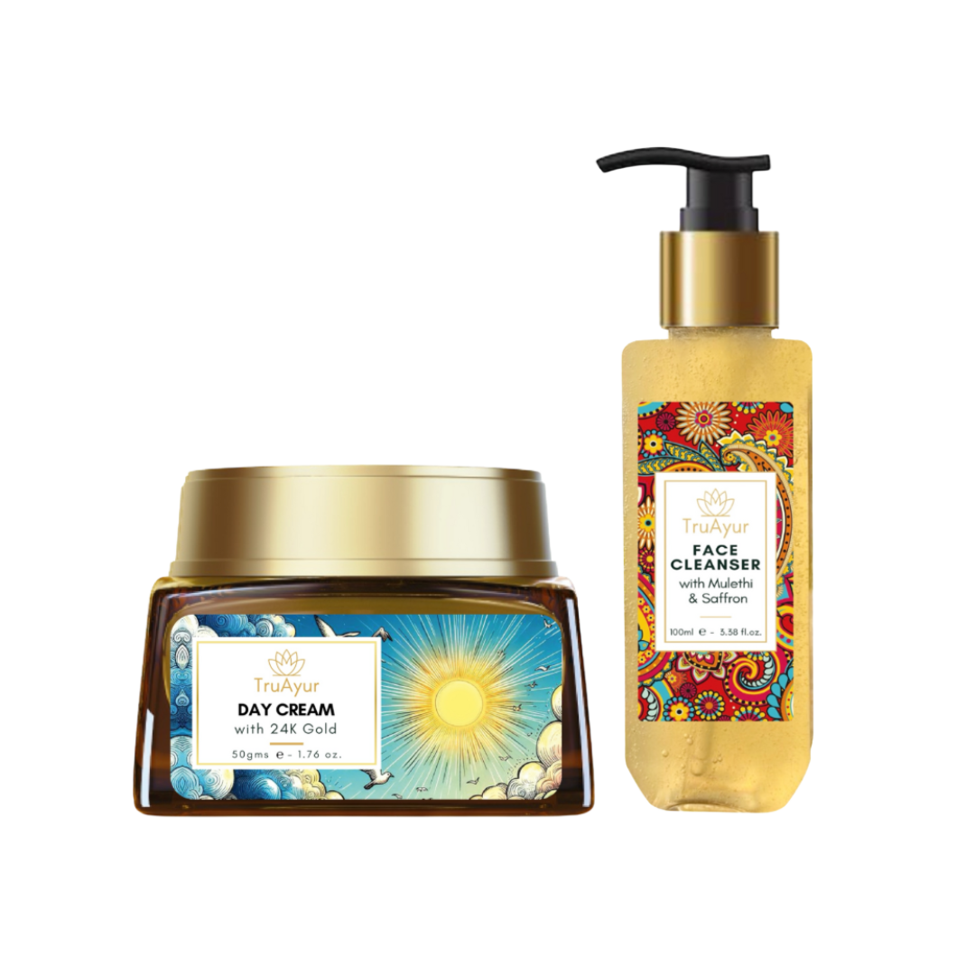 Migliora la tua routine quotidiana di cura della pelle con il Radiant Skin Ritual, un lussuoso duo che unisce il potere purificante del detergente viso ayurvedico alla brillantezza nutriente della crema da giorno in oro 24 carati. Insieme, lavorano in perfetta sinergia per pulire, idratare e ringiovanire la pelle, svelando un bagliore luminoso e giovanile.