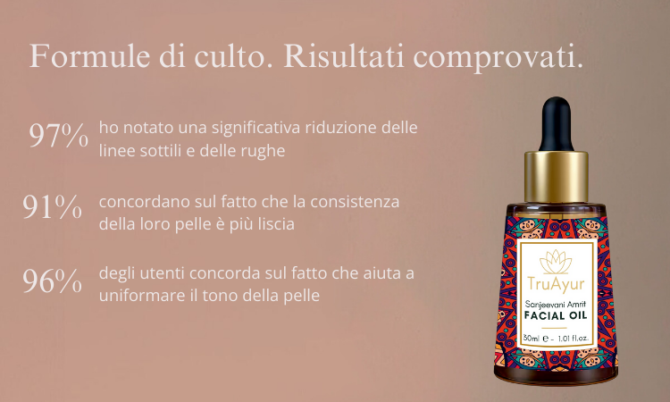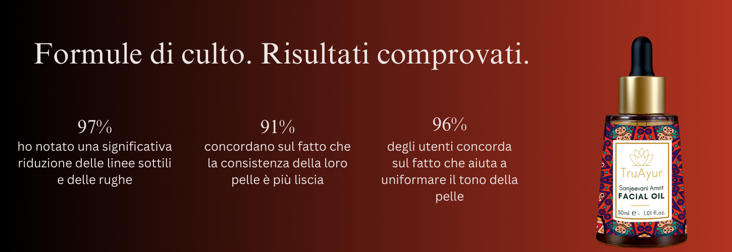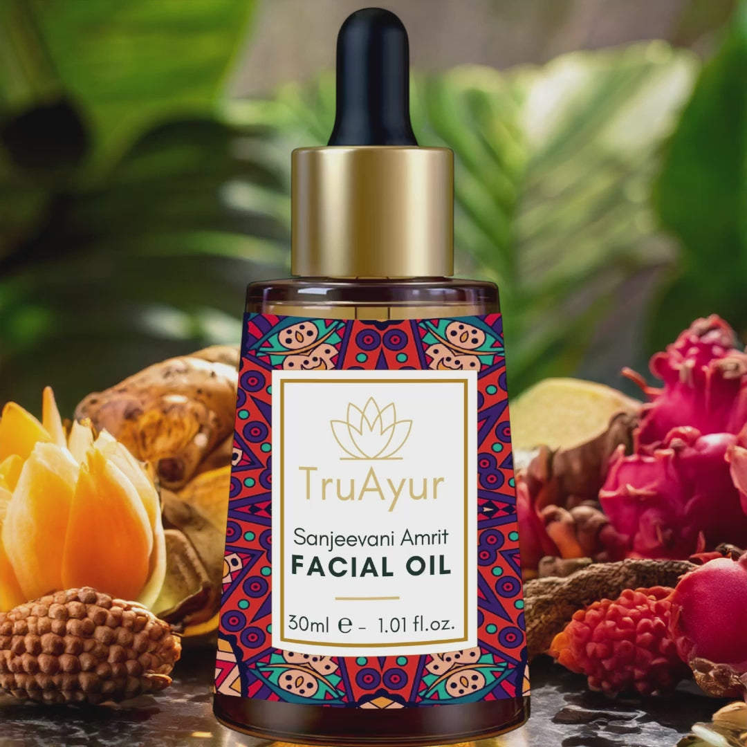 Sanjeevani Amrit Facial Oil è un tradizionale e unico elisir ayurvedico arricchito con la preziosa erba Sanjeevani e molti altri potenti prodotti botanici per combattere i primi segni dell'invecchiamento e ridurre la pigmentazione. Questo lussuoso preparato nutre intensamente la pelle, migliorandone la consistenza e ripristinandone la naturale luminosità. Questo olio rivitalizzante ayurvedico sfrutta il potere di erbe rare e potenti, molte delle quali sono apprezzate per le loro proprietà rigenerative ma non si trovano comunemente in Occidente. La formula funziona in modo olistico per offrire una carnagione più luminosa e uniforme e una pelle ringiovanita che irradia vitalità. Combinando l'antica saggezza ayurvedica con la scienza moderna, Sanjeevani Facial Oil offre una soluzione rivoluzionaria per la cura della pelle, offrendo un'esperienza trasformativa che ringiovanisce e rivitalizza la pelle dall'interno.